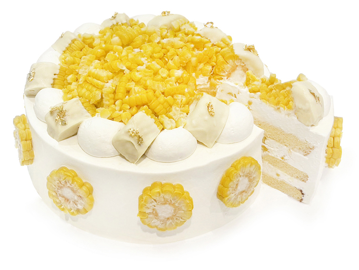 みずみずしく甘い青森県 新郷村産 希少とうもろこし「郷のきみ」を塩クリーム、スポンジと共に飾り付けました。ホワイトチョコレートを合わせた郷のきみと共に、口いっぱいに広がるとうもろこしの美味しさをお楽しみください。