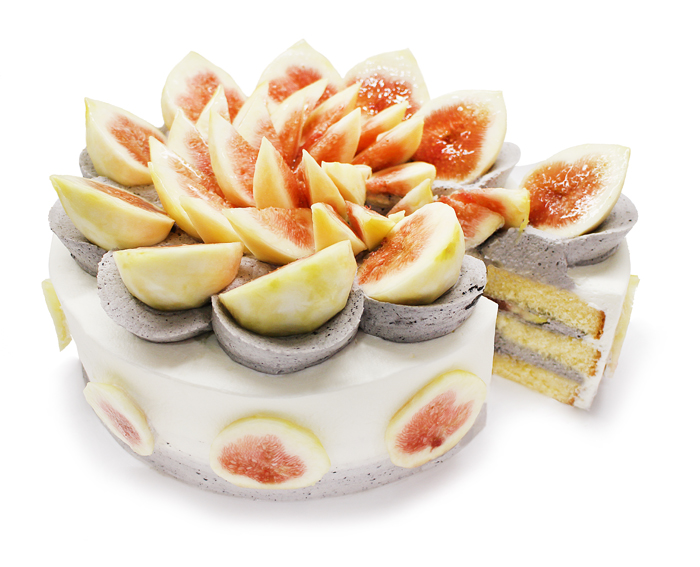 優しい甘みの新潟県産いちじく「越の雫」をふんだんに使用し、黒ごまクリームとあわせて、スポンジ、生クリームと共に飾り付けました。