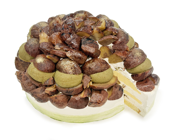 大粒で糖度が高い極上ぼ和栗、熊本県 山江村産の「やまえ栗」と、薫り高い抹茶マロンクリームをあわせたショートケーキです。「やまえ栗」と抹茶マロンクリームの相性抜群なコンビネーションをお楽しみください。