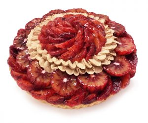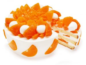 濃い甘みで果汁たっぷりの「ブラッドオレンジ」を使用し、キャラメルチョコクリームとあわせて飾り付けました。「ブラッドオレンジ」と優しい甘さのキャラメルチョコクリームの相性抜群なケーキをお楽しみください。